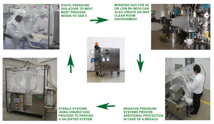 The pressure inside the enclosure measured with high precision is used to control fan speed and gas inlet. The flow of gas pas through filter which can use the safe change filter technology
